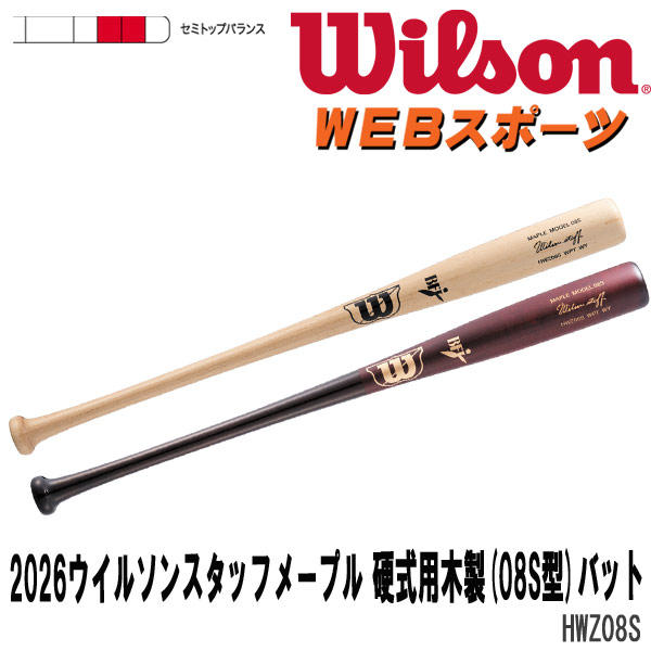HWZ08S 2026ウイルソンスタッフメープル 硬式用木製(08S型)バット HWZ08S セミトップバランス 一般硬式 WBW2041010 WBW2041020 ルイスビルスラッガー専門店カタリスト特約店 バット通販ならWEBスポーツ本店