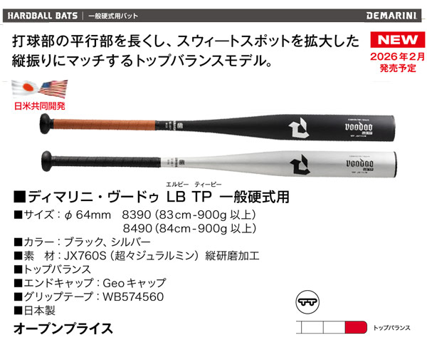 [名称]2026ディマリニ・ヴードゥ LB TP 一般硬式用バット DJBBVDLTBF トップバランス 高校硬式 WBD2661010 WBD2661020【おまけ付き】
