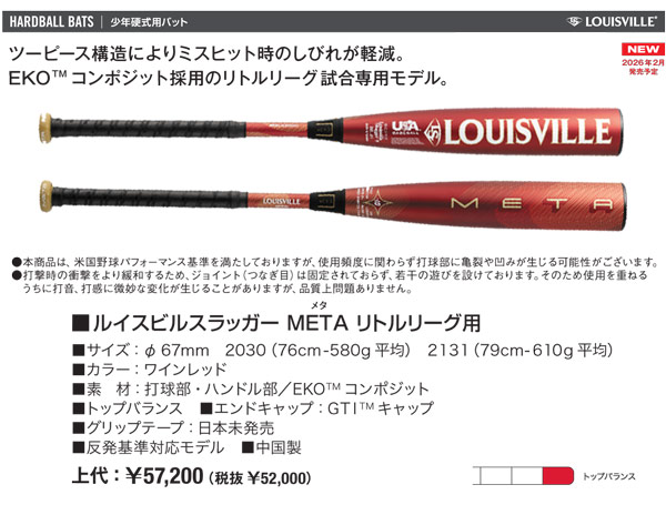 UBMTB10BF-CASE 【バットケース同梱版】2026ルイスビルスラッガー META リトルリーグ用バット UBMTB10BF トップバランス USA BASEBALL リトルリーグ WBL4223010 ルイスビルスラッガー専門店カタリスト特約店 バット通販ならWEBスポーツ本店