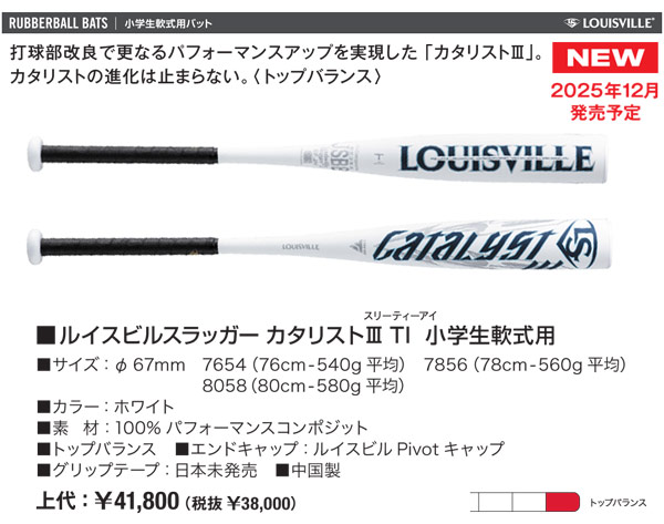 LJJRCTTBF-CASE 【バットケース同梱版】【12月予約】2026ルイスビルスラッガー カタリスト3 TI 小学生軟式用バット LJJRCTTBF トップバランス JSBB WBL4225010 ルイスビルスラッガー専門店カタリスト特約店 バット通販ならWEBスポーツ本店