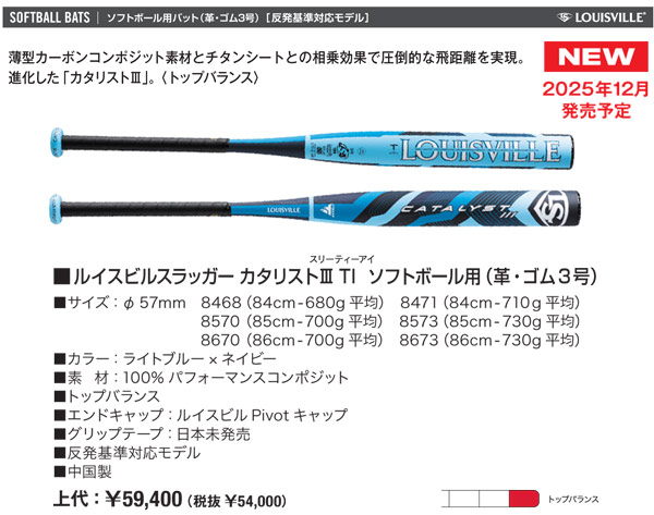 【バットケース同梱版】【12月予約】2026ルイスビルスラッガー カタリスト3 TI ソフトボール用(革・ゴム3号)バット LJKSCTTBF トップバランス JSA100 WBL4227010