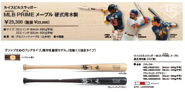 LJHWPSM7MBE 【12月予約】2026ルイスビルスラッガー MLB PRIME メープル 硬式用木製 (CC7型)バット LJHWPSM7MBE ミドルバランス BFJ WBL4065010 WBL4065020 ルイスビルスラッガー専門店カタリスト特約店 バット通販ならWEBスポーツ本店