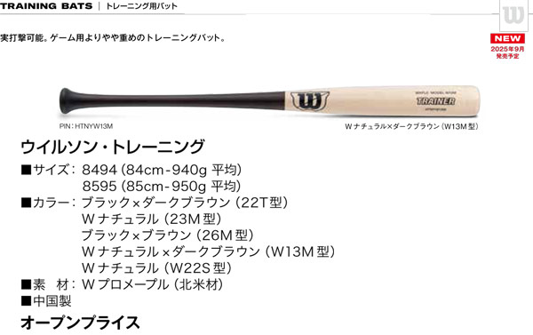 HTNYW13M 2025AWウイルソン トレーニング(W13M型)バット HTNYW13M トレーニング WBW2035010 ルイスビルスラッガー専門店カタリスト特約店 バット通販ならWEBスポーツ本店